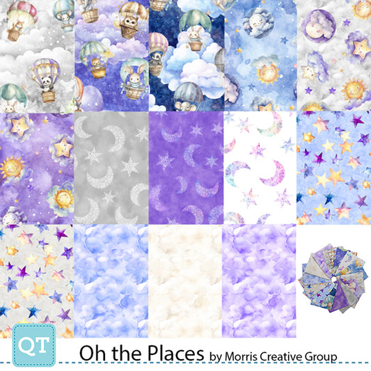 Precut Fabric Fat Quarters Oh The Places by Morris Creative Group for QT Fabrics - 14 Fat Quarters